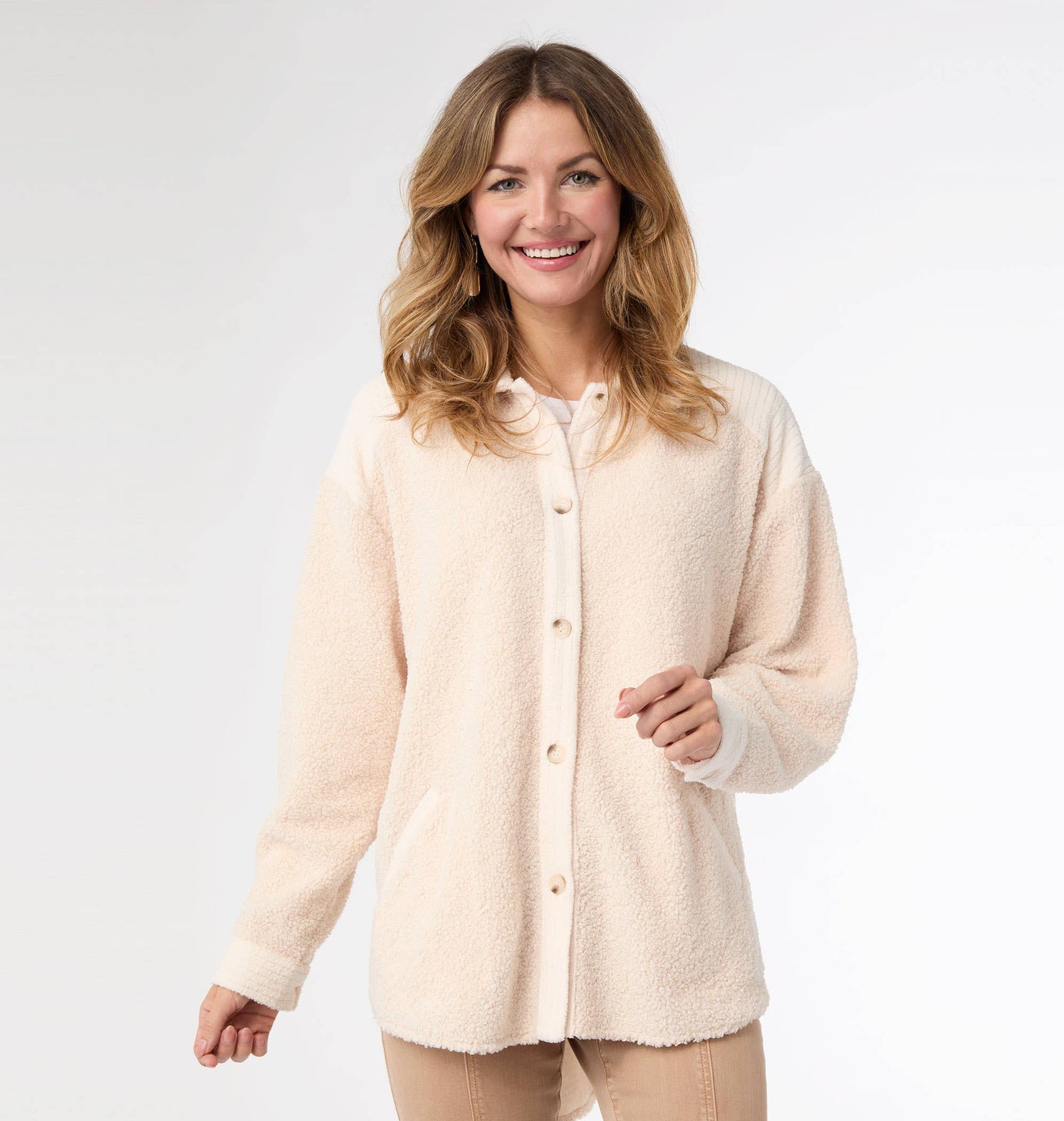 The perfect blend of shirt and jacket, the Hannah Button Front Shacket is your go-to layering piece for transitional weather. Designed with a structured silhouette and classic button-front closure, this shacket delivers polished style with effortless wearability. Lightweight enough to layer over a tee yet substantial enough to wear as an outer layer, it’s a versatile staple that works across seasons and occasions.