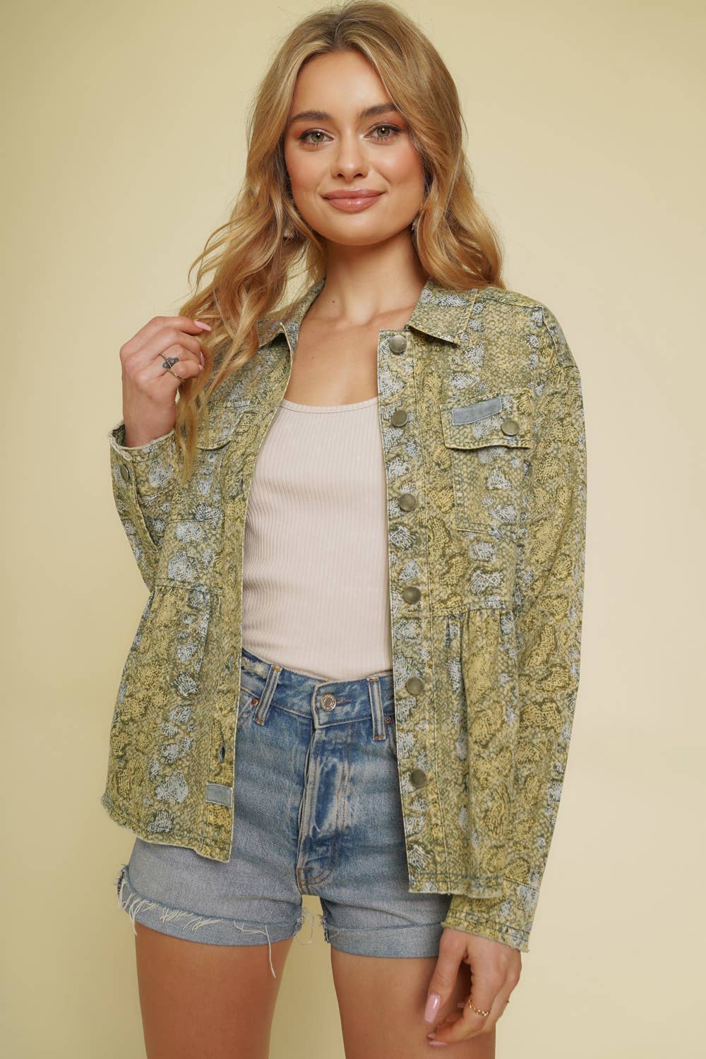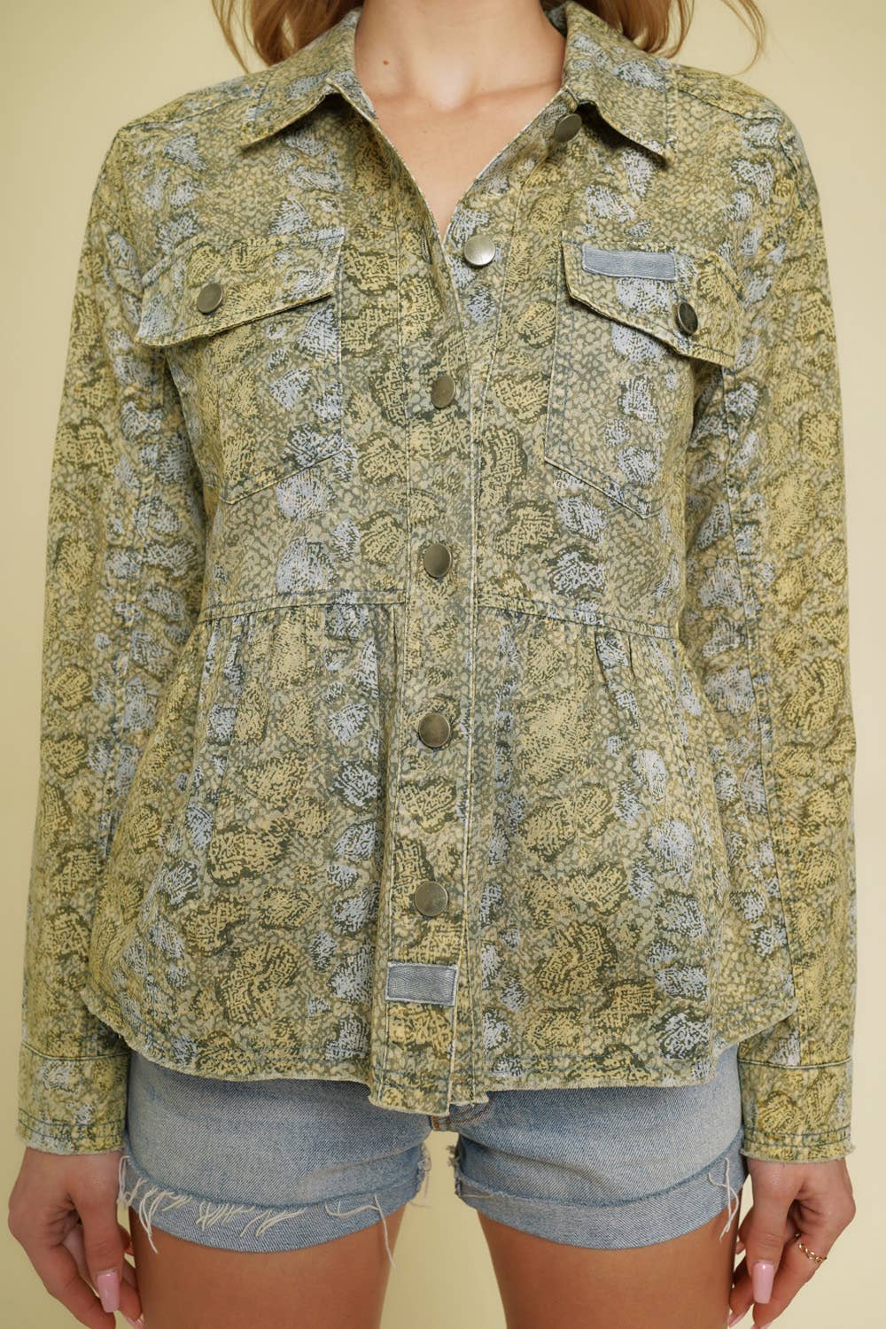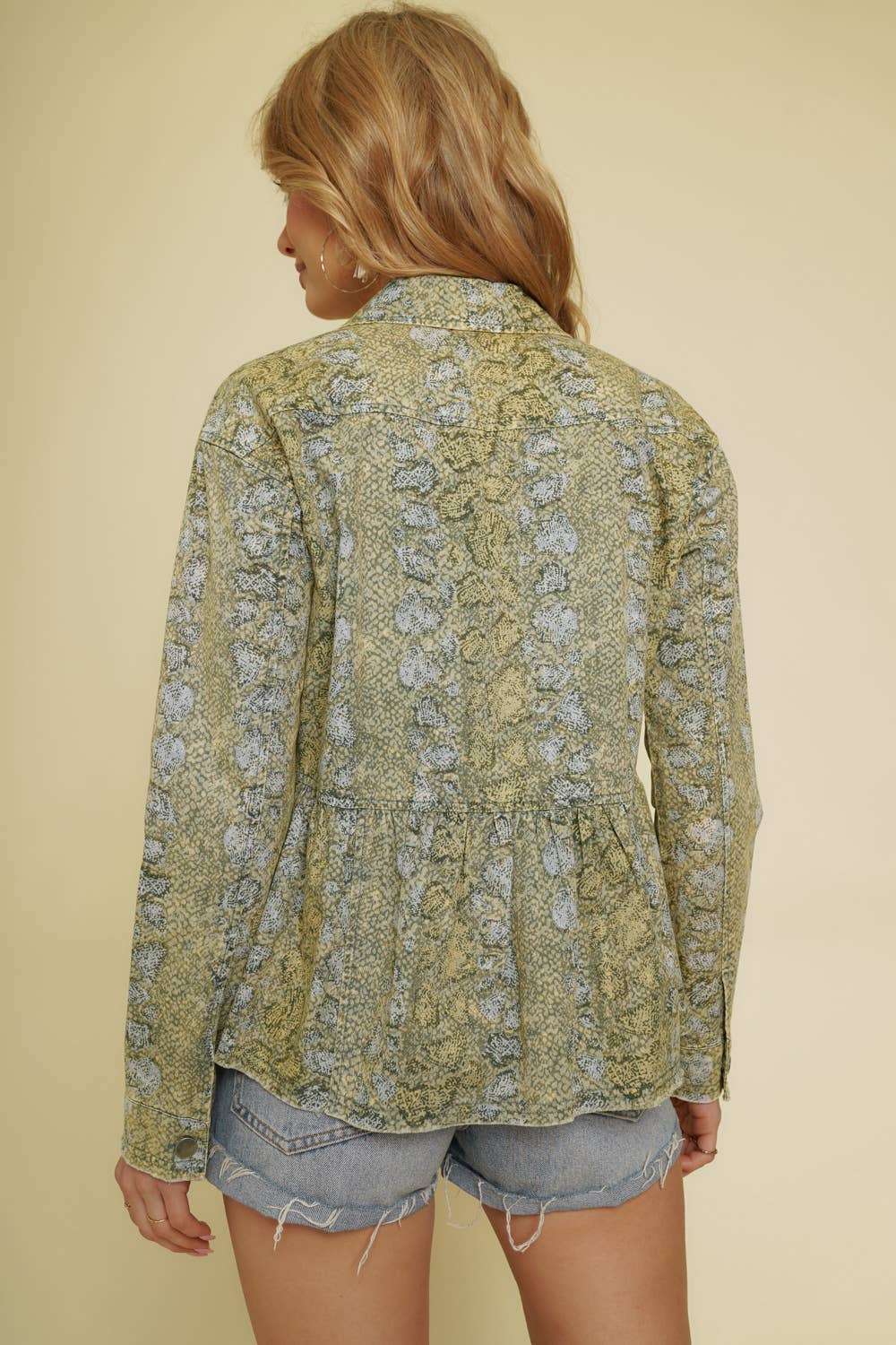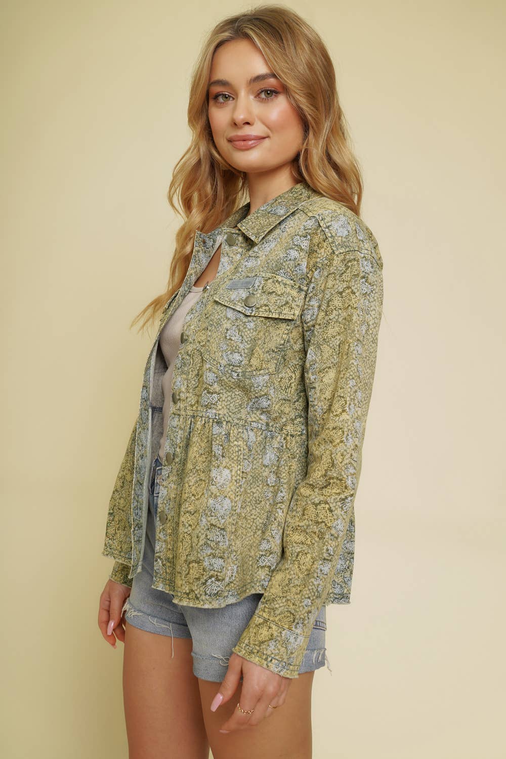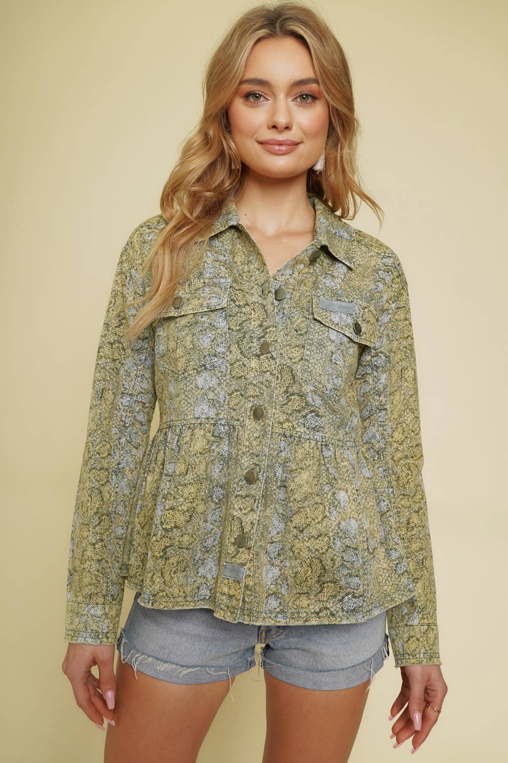 Unleash your inner wild side with this stunning Animal Print Peplum Jacket! Featuring bust flap pockets, metal buttons for a touch of edginess, and a waist gathered peplum bottom for a flattering silhouette. Let this jacket bring out your fierce and confident nature!