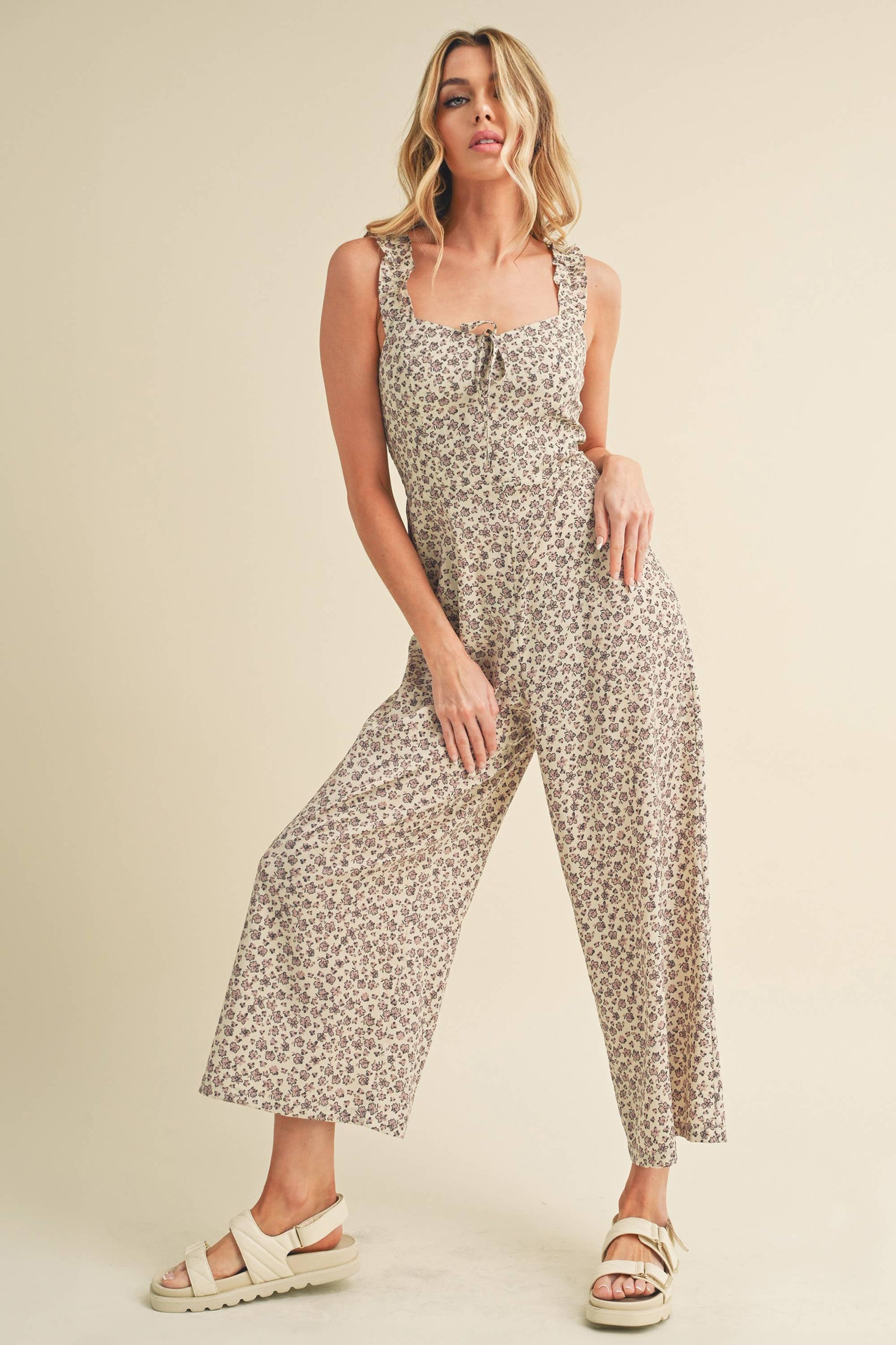 Radiating femininity, the Brandis jumpsuit blooms in vibrant florals. Its sweetheart neckline, adorned with elasticated straps and playful ruffle trim, complements the figure, ensuring comfort with elastic at the back. A definite head-turner, embody the essence of elegance and grace in this floral masterpiece.