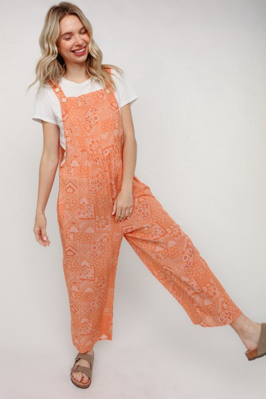 Sleeveless suspender jumpsuit with wide-leg bib overalls, featuring bohemian side pockets and adjustable shoulder straps for a fun, carefree look.