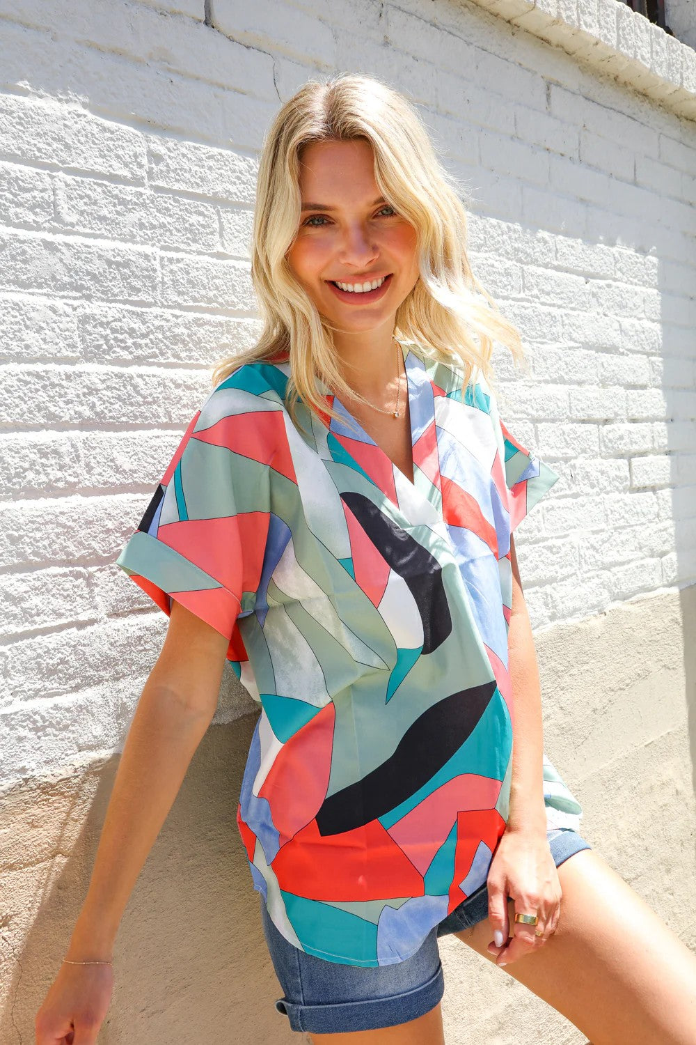 Elevate your wardrobe with the Diamond Geo Print Blouse, where classic charm meets playful patterns. This blouse features a lively diamond geometric print that adds a fun twist to any outfit. Perfect for brightening up your day at the office or adding flair to a casual weekend look, its comfortable fit ensures you stay stylish without sacrificing ease. Pair it with your favorite jeans or a sleek skirt to let the vibrant design shine.