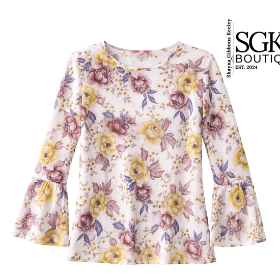 Soft, feminine, and effortlessly polished, the Ivory & Mauve Floral Bell Sleeve Top features a romantic floral print on an ivory base with flowing mauve accents. Designed with statement bell sleeves and a flattering, easy fit, this top adds instant charm to any outfit.