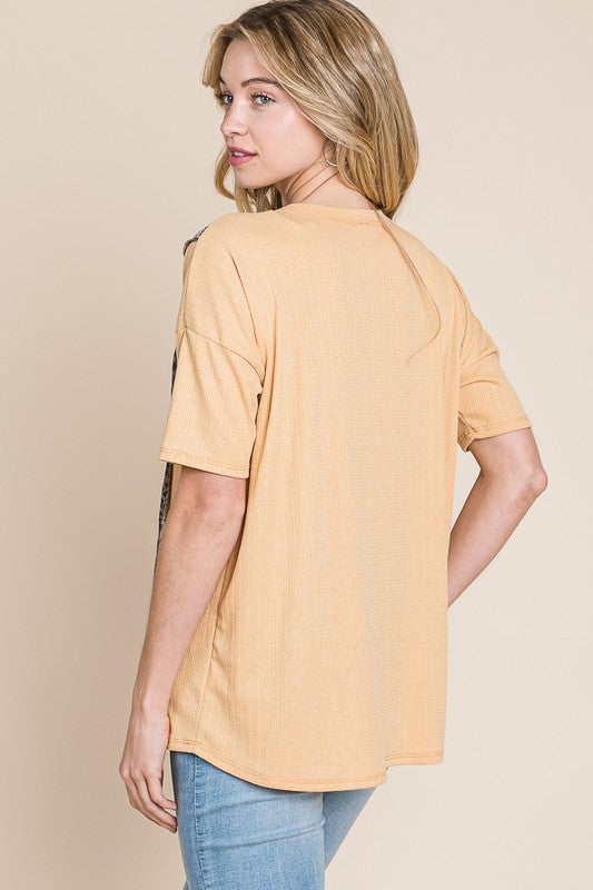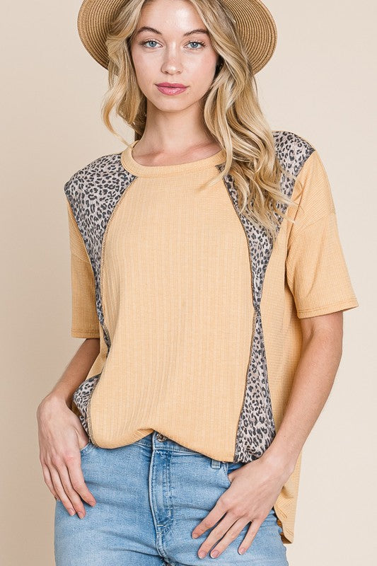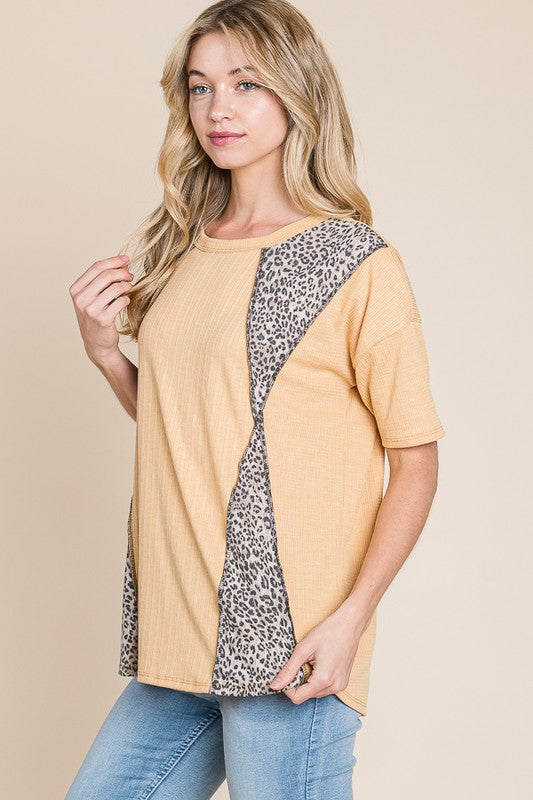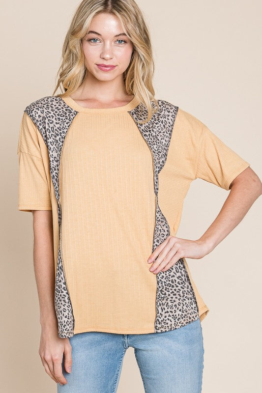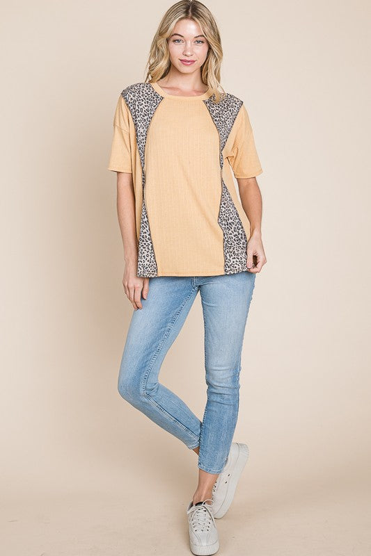 It features a trendy leopard print and is made of a comfortable, breathable fabric. The perfect blend of style and comfort, this top is a must-have for any fashion-forward wardrobe.