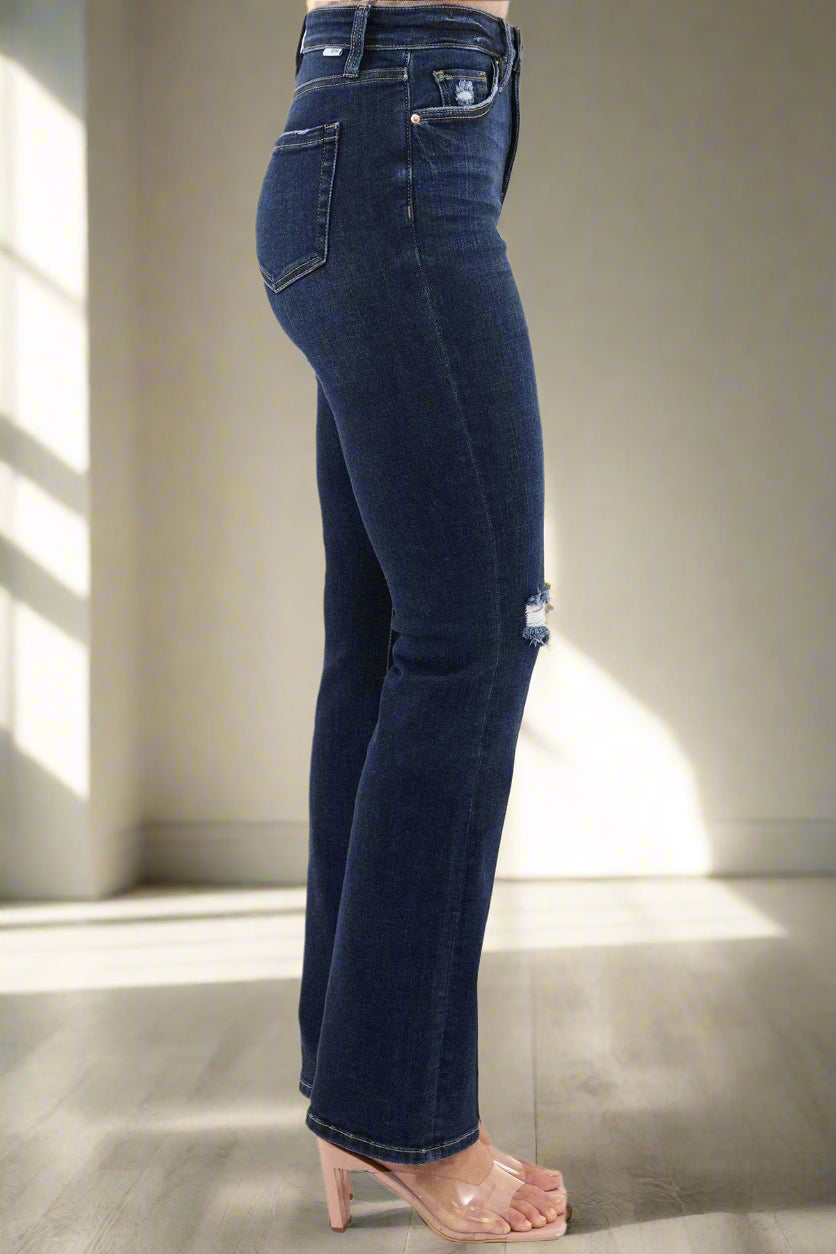 Mia High-Rise Bootcut Distressed Jeans bring a playful twist to your wardrobe with their perfect blend of modern edge and timeless style. Designed for women who love a flattering fit with a bit of attitude, these jeans hug your curves in all the right places thanks to their high-rise silhouette. The subtle distressing adds character, making them ideal for casual days or nights out. Step into confidence and let your style speak volumes with these effortlessly cool, curve-enhancing jeans that promise comfort and charm in every wear.