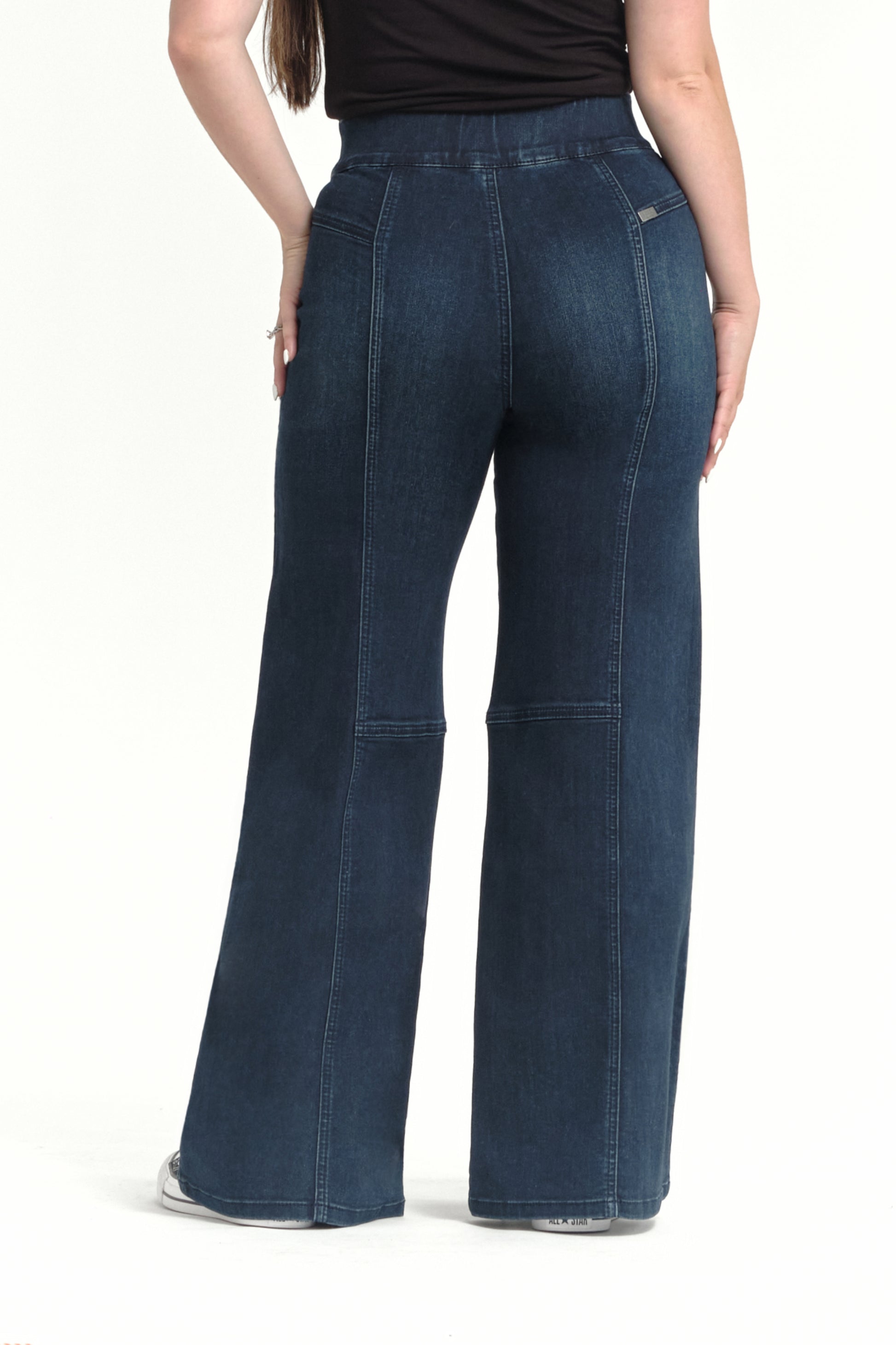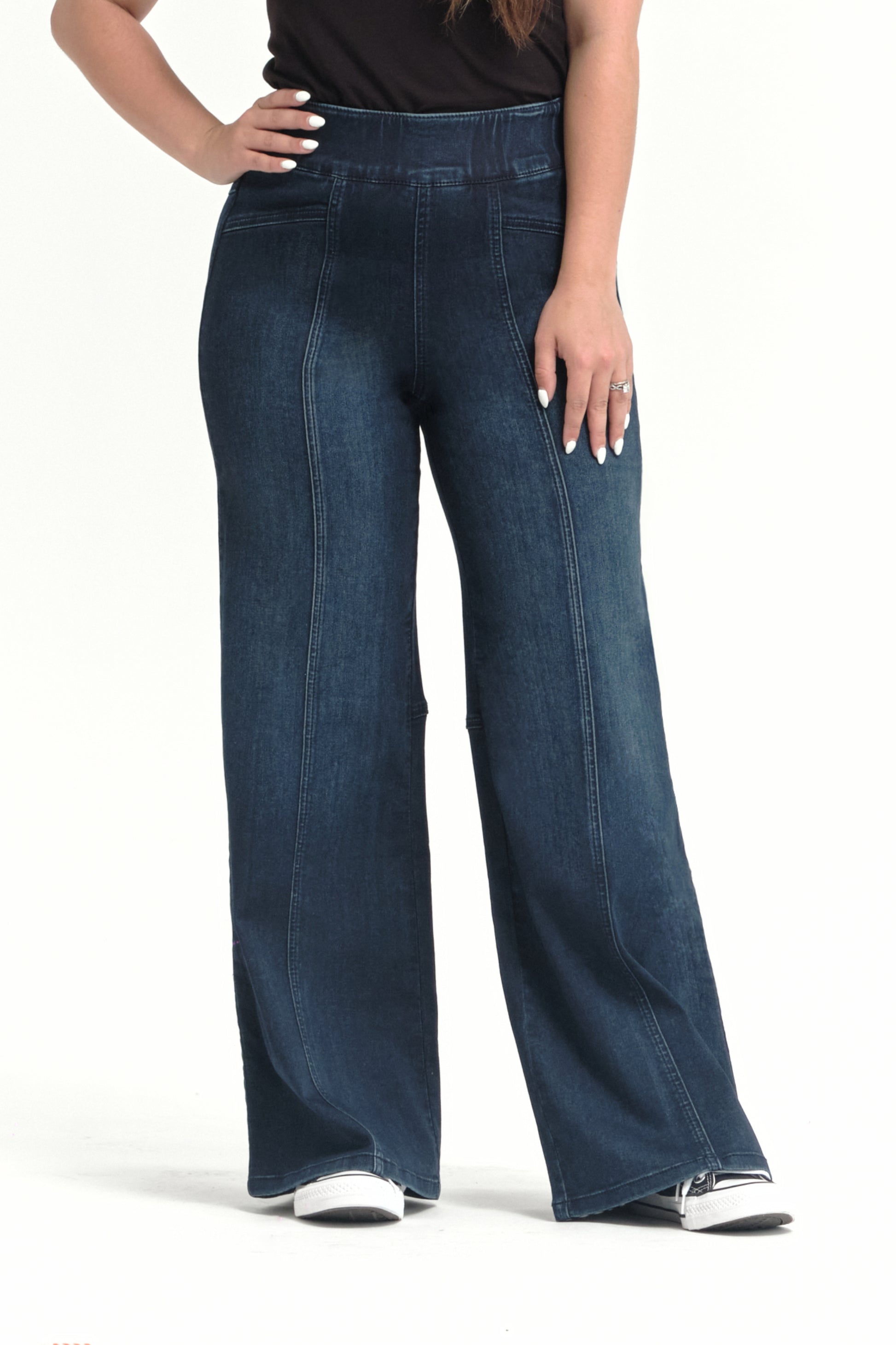 Our brand new Petite pull-on wide leg jeans make a bold statement, stealing the show effortlessly. This particular fabrication is crafted with very breathable, very soft Silk Denim, making these the most comfortable, most effortless jeans to take you through day to night. Even better, they are crafted with Ab-Solve technology for that perfect amount of Tummy Control.