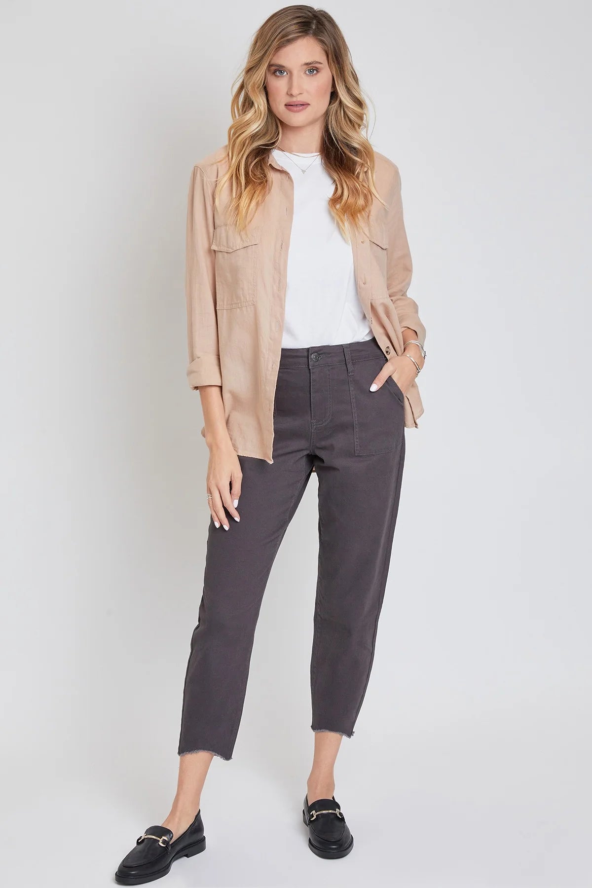 It's all about the details in our pair of Missy Pork Chop Pocket Skinny Pants with Dog Bite Hem! Featuring skinny fit with four-pocket construction, single-button closure with zipper, dog bite hem, and belt loops.