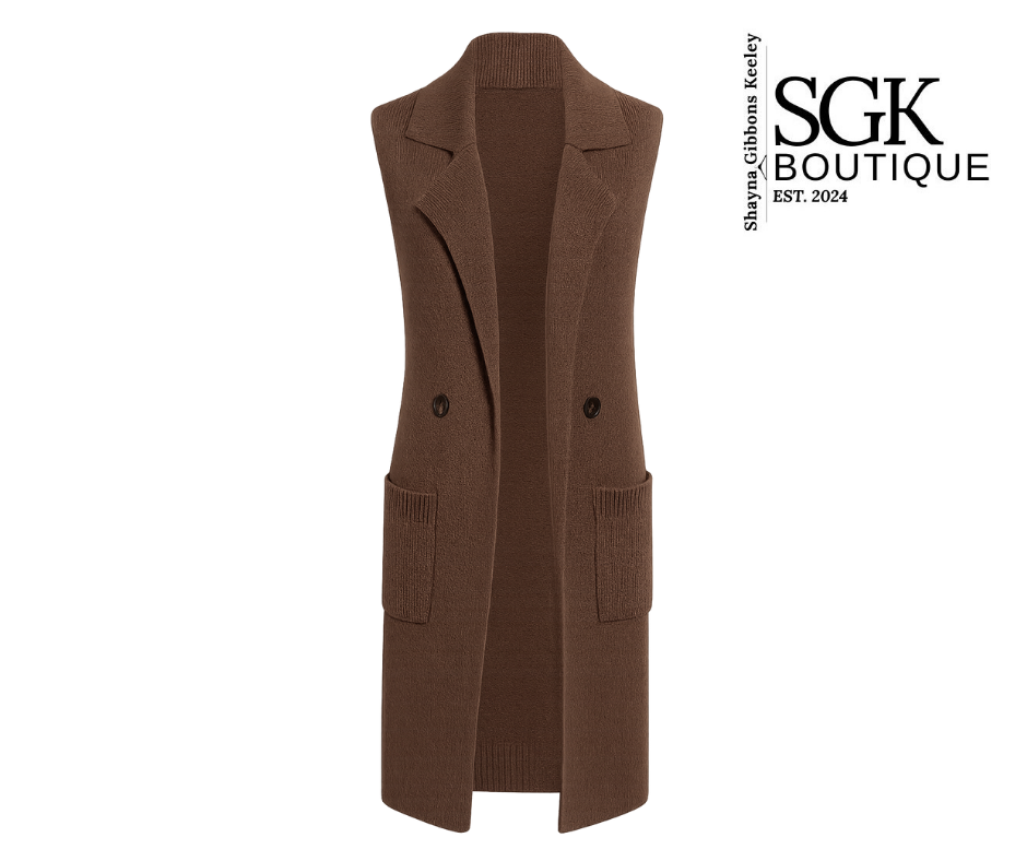 Elevate your layering game with this playful sleeveless sweater vest featuring a stylish notched collar that adds a chic twist to any outfit. Designed with convenient pockets, it offers the perfect spot to stash small essentials or keep your hands cozy. The functional buttons down the front let you wear it open for a relaxed vibe or buttoned up for a polished look. Made for those who love a mix of comfort and charm, this long sweater vest brings warmth and personality to your wardrobe in one versatile piece.